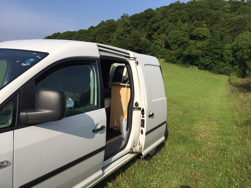 Oleg is far from completed. For now I've chosen not to go with a leisure battery and split relay charge because, well quite simply I don't need it. I have somewhere around 130,000 maH of power available at 5v through power banks and the only power I need is for phone and tablet. There's no electrically powered clean water tap - I'm still capable of lifting a 5lt container and pouring the water manually. In time and as the trips get longer I may look at the power situation again but for the present it's more than enough. Now it's been used in the real-world I'll get around to sealing the sink in place and in time I'm sure the laboriously hand-swen covers will be replaced by something a bit more professional looking. But summer's here and after 3 months in the building the priority now is getting Oleg out on the road and waking up, in comfort, where the road takes us.