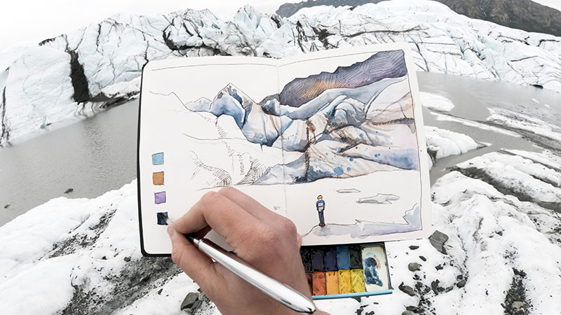 As part of their comprehensive programme at KMF 2025, KEEN will be presenting the UK & European premiere of the KEEN Effect film ‘Glacier Speak’, a sketch of an Alaskan glacier that sends watercolour artist Max Romey on a journey to find where his grandmother stood four decades ago. While trying to create the same sketch in the same place with the same materials—with only one page to guide him—he discovers that the glacier is trying to show him an even bigger picture.