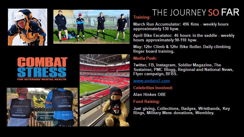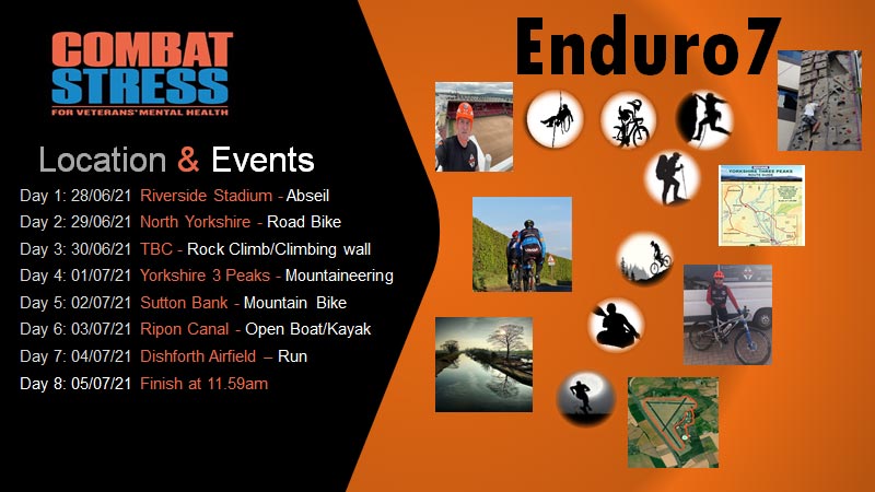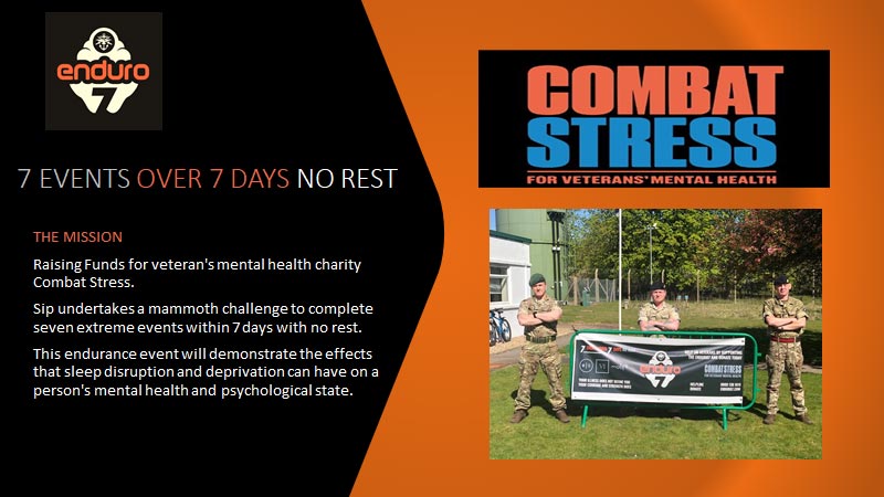 Major Powers has been planning the seven day “Enduro7” endurance event for two years and it will finally take place following months of training on 28th June 2021. Each extreme event will last for 24 hours and will test Major Powers and his team’s physical and mental fortitude, with a target of raising £25,000 for Combat Stress.