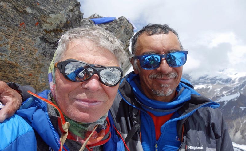 Mick Fowler, 63, is a three-time Piolet D’Or winner and known around the world for completing first ascents of routes on technically challenging peaks between 6000m and 7000m. Almost 30 years after they last climbed together, Mick and Vic Saunders teamed up in 2016 to achieve a first ascent on the north face of Sersank in the Indian Himalaya. Keen to continue the reunion, they agreed to attempt another striking 6,000m peak in 2017, but Mick was diagnosed with cancer and underwent extensive treatment, involving an ostomy (a procedure to re-direct the bowel to an exit through an opening in the abdomen wall). After regaining his fitness, Mick was able to link up with Vic for an expedition earlier this year, but they were forced to abandon their attempt on an unclimbed Himalayan peak due to bad weather and dangerous conditions on the mountain.